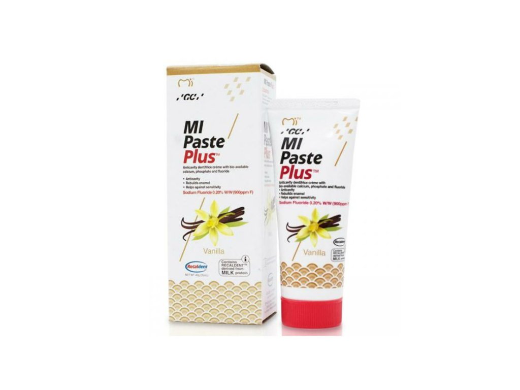 - Voda, Glycerol, CPP-ACP, D-sorbitol, CMC-Na, Propylene glycol, Silicon dioxide, Titanium dioxide, Xylitol, Phosporic acid, Sodium Fluoride, Flavoring, Sodium saccharin, Ethyl p-hydroxybenzoate, Propyl p-hydroxybenzoate, Butyl p-hydroxybenzoate.